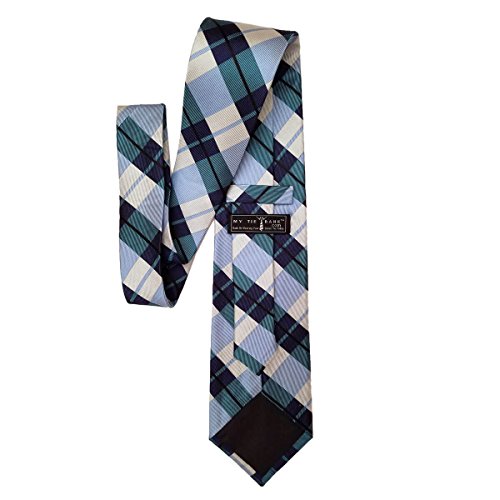 (My Tie Bank)/Accessories/Ties/DIRECT FROM USA/Roscoe Black Blue Plaid Check 100% Silk 2.5 Inch Skinny Tie