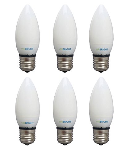 Viribright 25 Watt Equivalent, fully dimmable, B10, Chandelier, E26 Base, Warm White (2700K), LED Light Bulb,Pack of 6