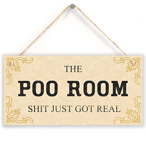 Vintage Style Toilet Sign- Functional Interior Poo Room Sign for Home Accessary Door Sign (5" x 10")