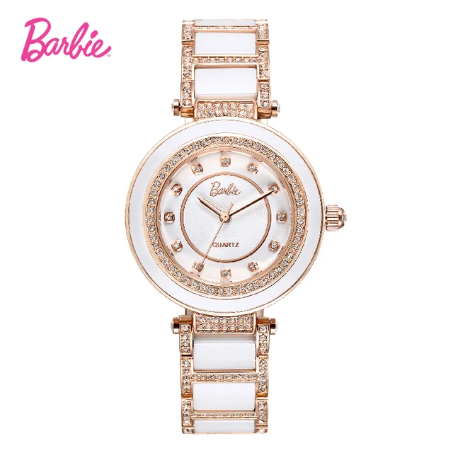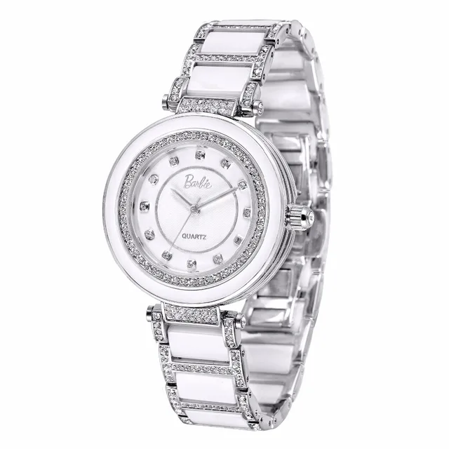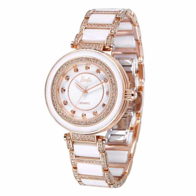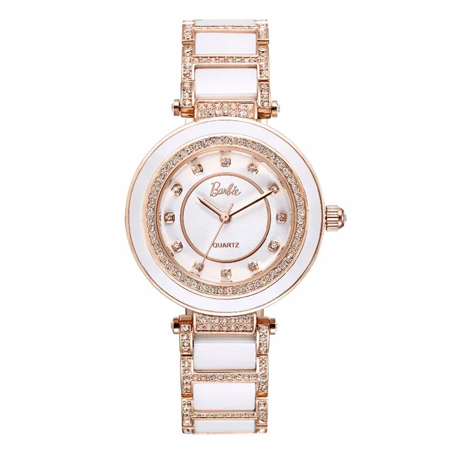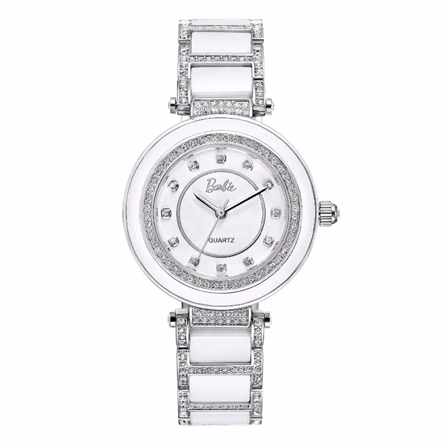 바비 공식 여성 시계 쿼츠 시계 뜨거운 판매 모조 다이아몬드 숙녀 팔찌 화이트 골드 모조 세라믹 시계