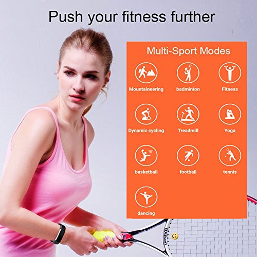 - ✔High-end Fitness Tracker: Track workout,running,riding,treadmill,hiking, fitness,basketball,badminton,tennis,football,climbing,spinning, yoga,dancing;8 default sport modes on the fitness tracker,additional 6 sport modes can be added in the APP
