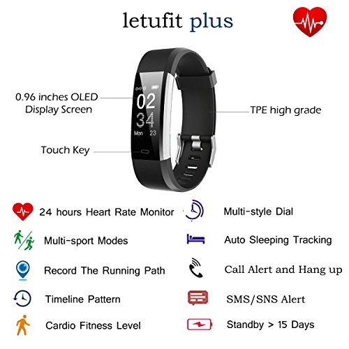Today 50% Off ! Fitness Watch,Fitness Tracker,Letufit Plus Activity Tracker With Heart Rate Monitor,Step Counter,GPS Tracker,Waterproof Smart Wristband for Android and Ios