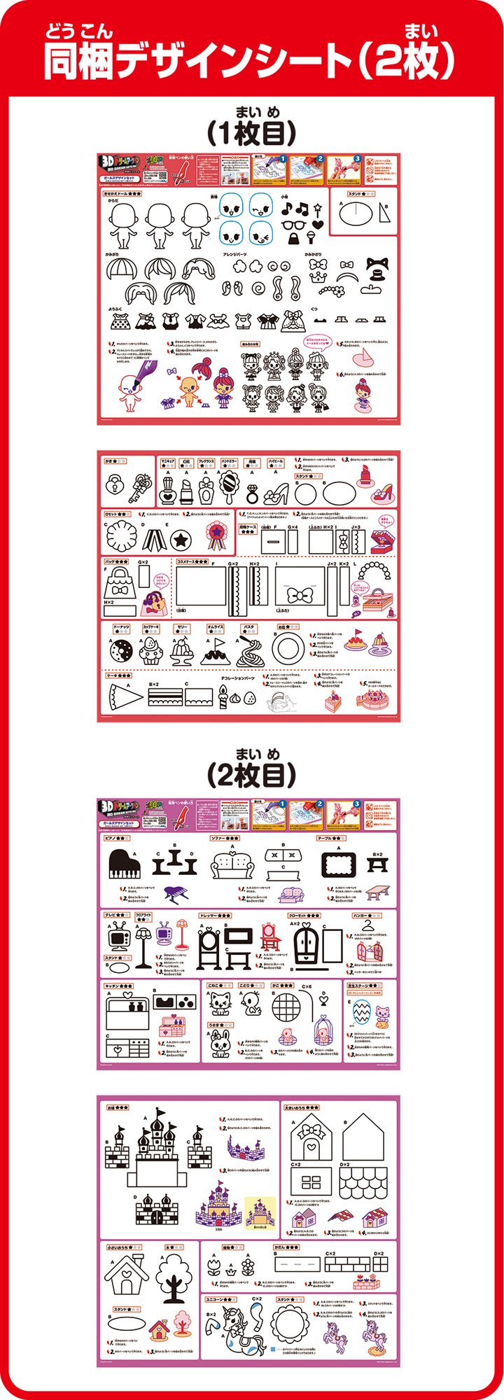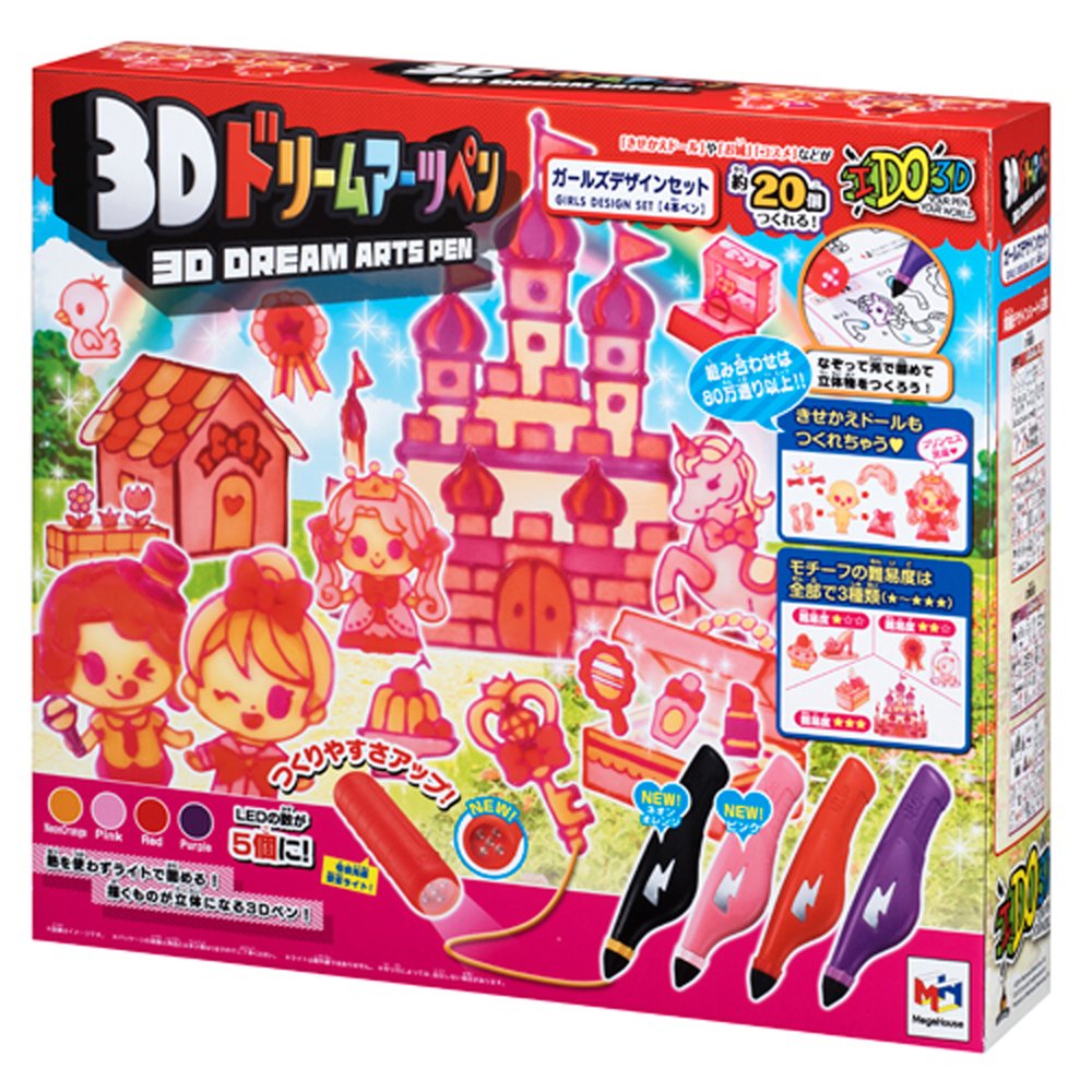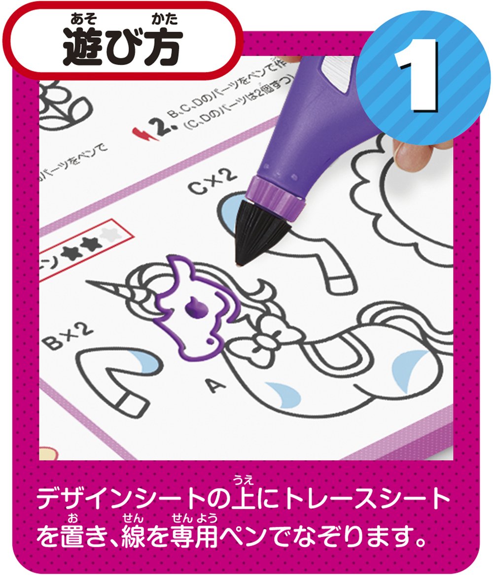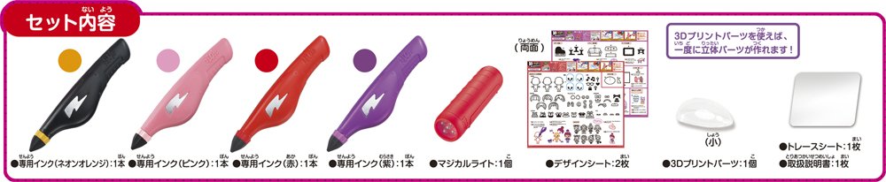 Approximately 20 pieces of design sheet and 3D parts are attached! Dedicated pen is a set of four red, purple, pink and neon oranges one by one.