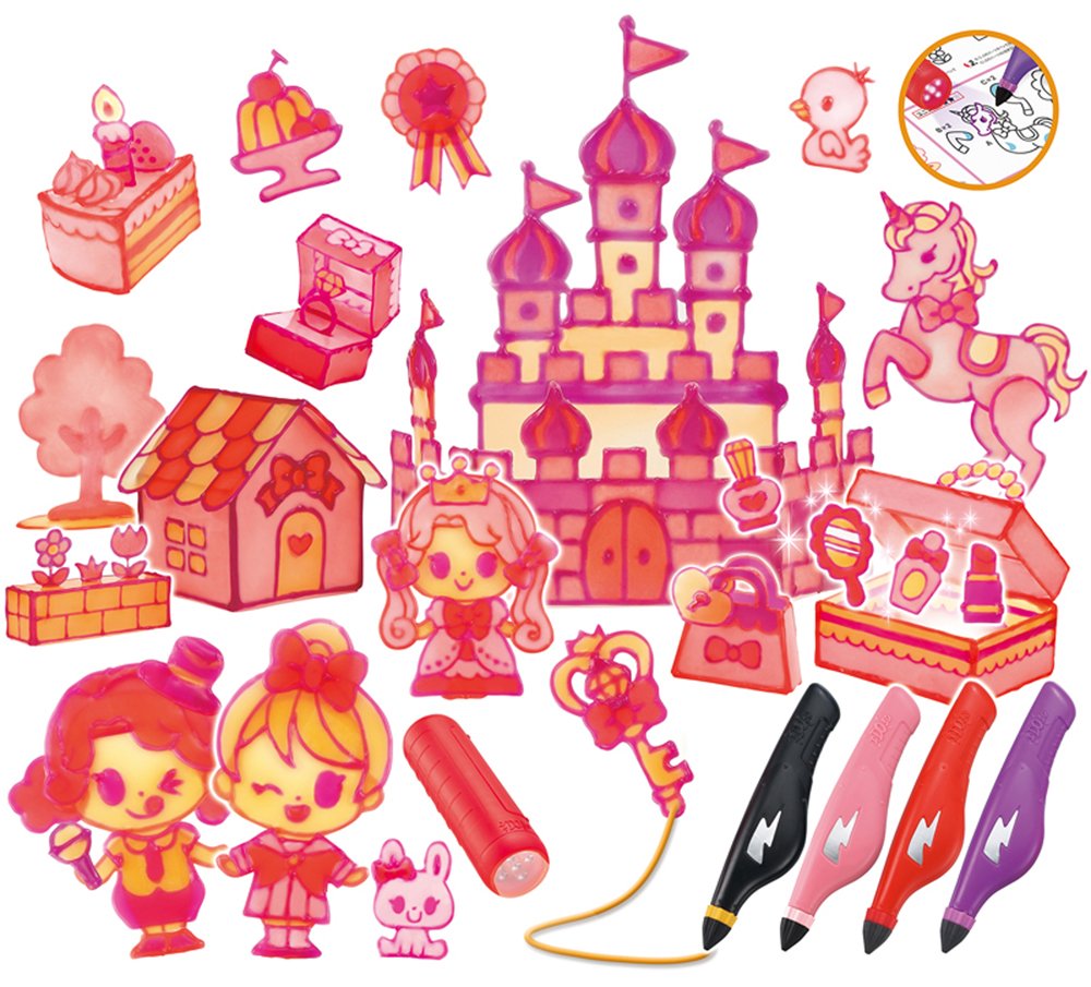 【Product Details】 Red Pen, Purple Pen, Pink Pen, Neon Orange Pen, Magical Light × 1, Trace Sheet × 1, 3 D Print Part × 1, Design Sheet × 2, Operation Manual
