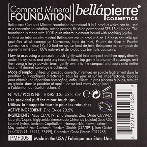Enhance your natural beauty. Bella Pierre's 5-in-1 compact foundation is all natural and very versatile. The all natural compact foundation can be used at home or on-the-go as a concealer, mineral foundation, and setting powder. In addition, the mineral foundation provides SPF 15 protection. The pure mineral pigments keep your skin moisturized, healthy and looking fabulous. Mineral foundation comes in ultra, ivory, latte, cinnamon, nutmeg, maple, brown sugar, cafe, chocolate truffle and double cocoa.