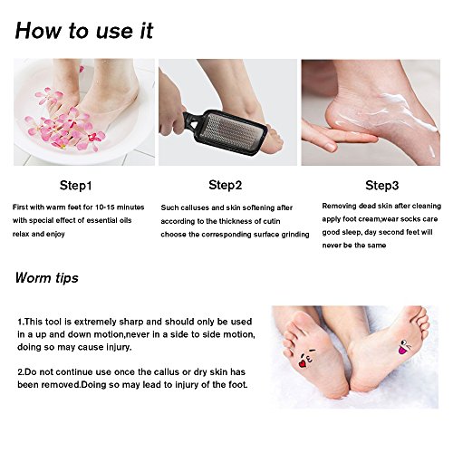 Taking the calluses, bad heel and tough deep skin away instantly. Large file surface for callus removal.It's like a huge cheese grater. It is better than pumice stones, exfoliation scrubs, callus removal gels and other foot care tools.
