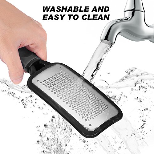 Product Material: Premium stainless steel file plate, ABS plastic margin, Rubber handle gives safe, green and healthy foot care tool. Sharp and small holes and non-slip handle brings more handy and efficient foot care experience. Light weight lets the user spend less strength to operate.