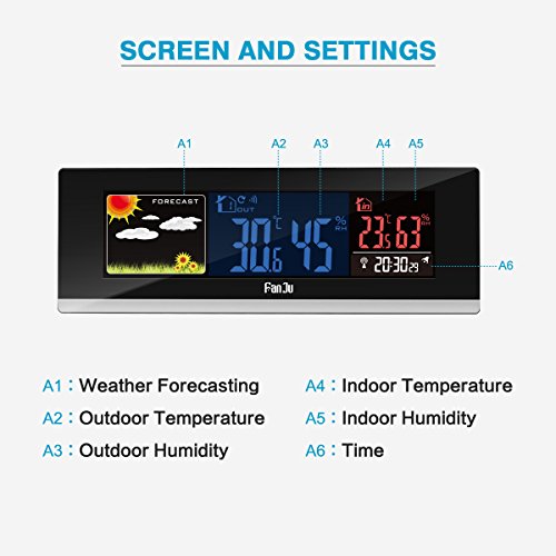 -. Title : FanJu FJ3368 Color Digital Wireless Weather Forecast Station with USB Chargers Function and Temperature, Humidity with Outdoor Sensor,Black