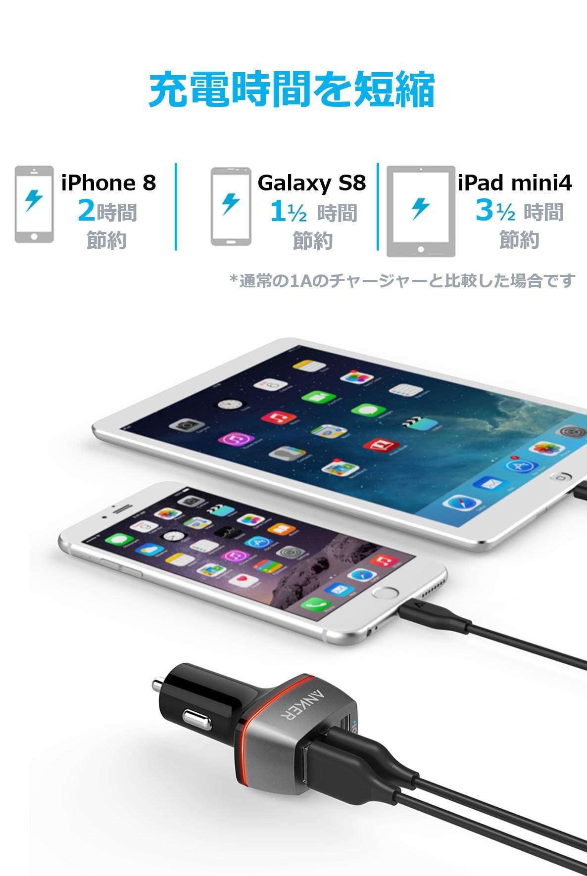 Anker proprietary technology PowerIQ (Detecting connected equipment and optimizing current) and VoltageBoost (Detect cable resistance and automatically adjust output voltage) realize ultra high speed charging.