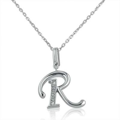- Title : Diamond Initial R Charm Pendant in Sterling Silver on an 18in. Chain