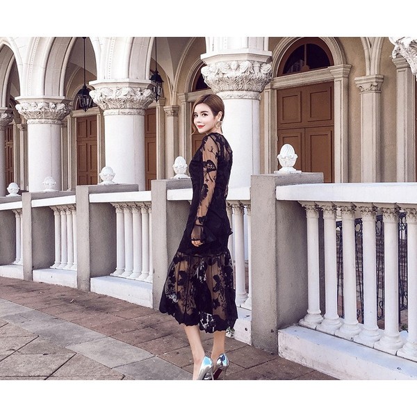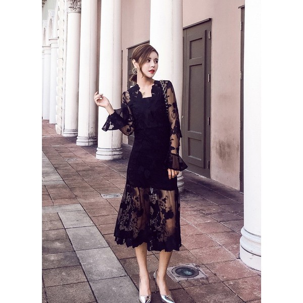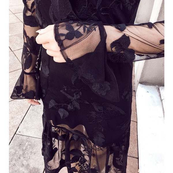 ミモレ丈ですが、足元が透けて見えるのでミニっぽくてセクシー。