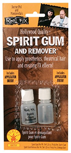 -. Binding : Apparel -. Brand : Rubie's -. Department : mens -. Feature : Reel fx Hollywood quality spirit gum and remover / Use to apply prosthetics and hair, including mustaches and beards / Made in the usa / Easy to use and simple to remove / Rubie's offers holiday and novelty costumes and accessories in sizes and styles for the entire family -. Genre : Makeup/FX -. IsAdultProduct : 0 -. Label : Rubies Costumes - Apparel -. Manufacturer : Rubies Costumes - Apparel -. PackageQuantity : 1 -. ProductGroup : Apparel -. ProductTypeName : ADULT_COSTUME -. Publisher : Rubies Costumes - Apparel -. Studio : Rubies Costumes - Apparel -. Title : Rubie's Costume Co Reel FX Spirit Gum and Remover