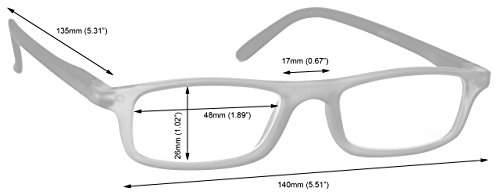 Product Description Lightweight mens/womens/unisex 'Designer' style reading glasses. For indoors/normal reading conditions. Sturdy frame design with spring hinges. Rubberized matt grey black finish. Includes FREE string pull cleaning cloth bag. Optical Power 2.00 (diopter). 0