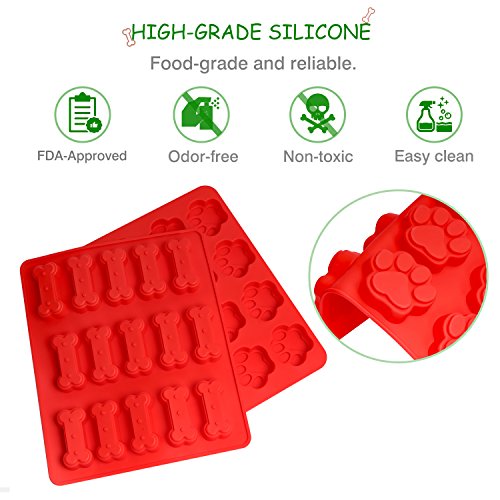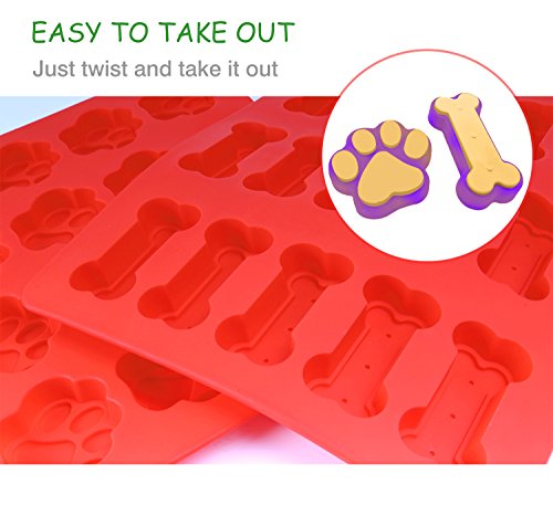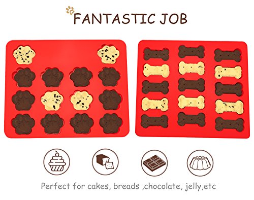 Nuovoware Baking Molds, [2PCS] Food Grade Soft Silicone Non-Stick Heat Resistant Dog Paws & Bones Shaped Cake Chocolate Candy Muffin Pudding Pastry Mold Tray, Soap Mold, Ice Cube Mold, Red