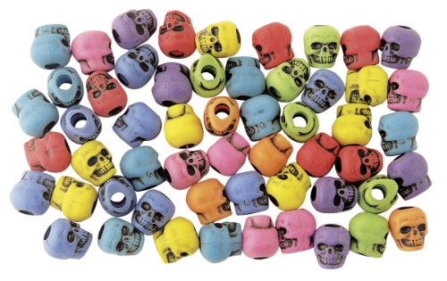 The Beadery 4-Ounce Bag of Skull Beads, Circus Multi with Black Antiquing