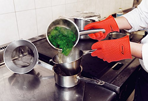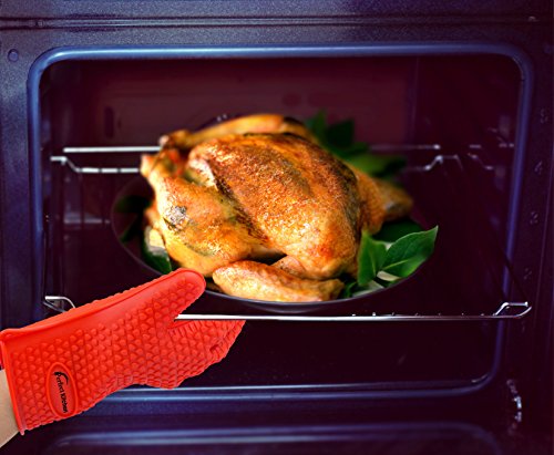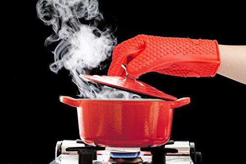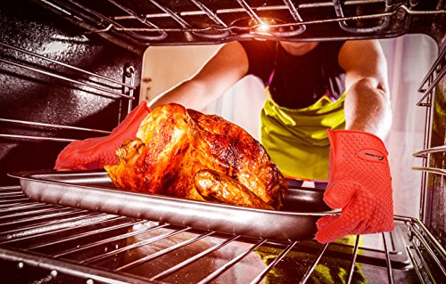 - iPERFECT KITCHEN SILICONE OVEN GLOVES HEAT RESISTANT IS DESIGNED TO MAXIMUM PROTECTION - Be safe and cover your hands to avoid burning accidents - Extreme cooking gloves heat resistant protection up to 425 degrees Fahrenheit - Far more protection and versatility than traditional Oven Mitt, Oven Mitts, Oven Mitten and Potholders!