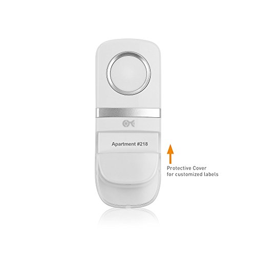 OUTDOOR RATED WIRELESS DOORBELL transmitter has an IP44 water resistance rating for use in warm or cold climate zones; Use the label holder with a protective cover to identify your office suite or apartment number