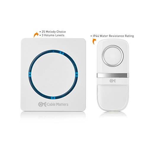 Convenient Doorbell Service The Cable Matters Battery-Free Wireless Doorbell Kit provides a wireless alternative to installing a doorbell with wires that have to be installed behind walls. Install it in minutes and enjoy it for years. The self-powered transmitter is rated for outdoor use and requires no batteries.