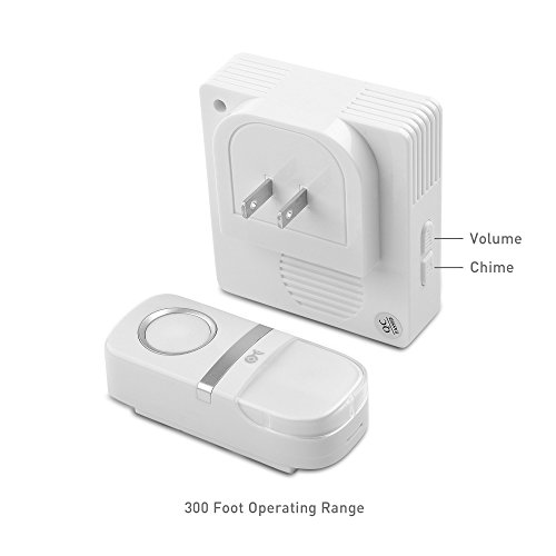 TASTEFUL DESIGN with a turquoise LED on the doorbell receiver; Ideal for adding an additional doorbell with a unique sound; 300 foot operating range covers the footprint of most homes, apartments or small offices