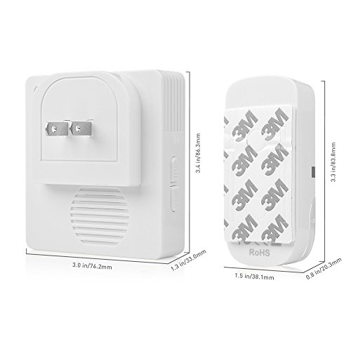 USER FRIENDLY INSTALLATION of outside push button transmitter with the included mounting adhesive strip; Doorbell receiver plugs into an available AC outlet; Install in an RV, mobile home, garage, workshop, warehouse delivery dock, detached apartment unit or use as a wireless door alert for an elderly parent