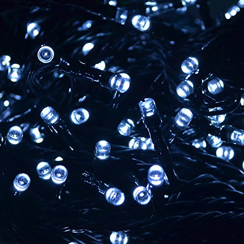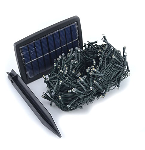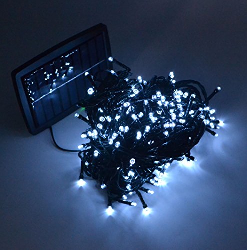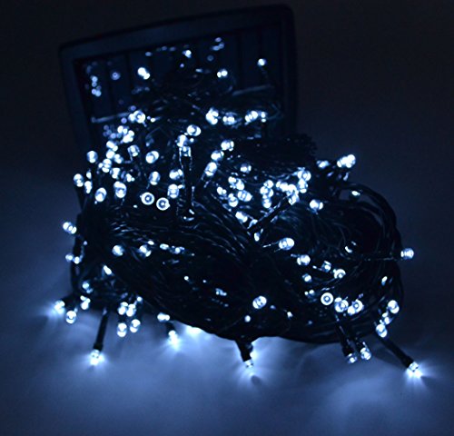 Samyo 100ft 300 LED 2 Light Modes Waterproof Solar Fairy Lights String for Outdoor Gardens Homes Christmas Lighting Party (White, 300 LED)
