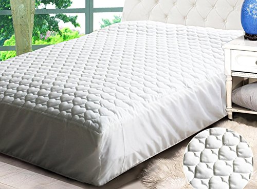 -. Brand : Maiija -. Color : White -. EAN : 0682500555008 -. Feature : • Queen size dimensions measures 60 inches x 80 inches; Knitted skirt stretches to fit up to 15 inch deep mattress / • The super soft quilt with fiberfill has additional loft that provides extra comfortable sleep and protection; vinyl back and elastic all around secure pad into position / Preserves and prolongs the life of your mattress. / • The cover is machine washable and is tumbled dry for easy maintenance -. Label : Maii Homelinens Inc -. Manufacturer : Maii Homelinens Inc -. ProductGroup : Home -. ProductTypeName : HOME_BED_AND_BATH -. Publisher : Maii Homelinens Inc -. Size : Queen -. Studio : Maii Homelinens Inc -. Title : Quilted Mattress Pad - Stretches up to 15 inch Deep Mattress Pad Cover Queen -. UPC : 682500555008