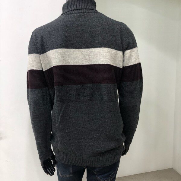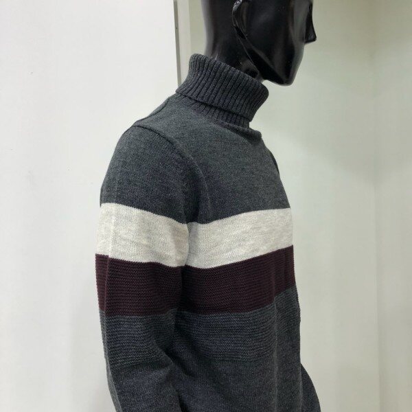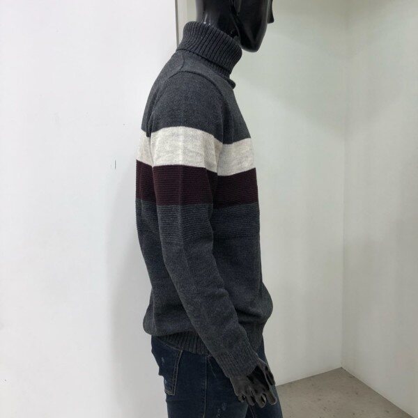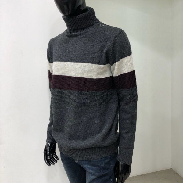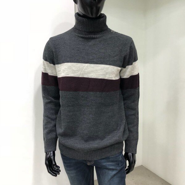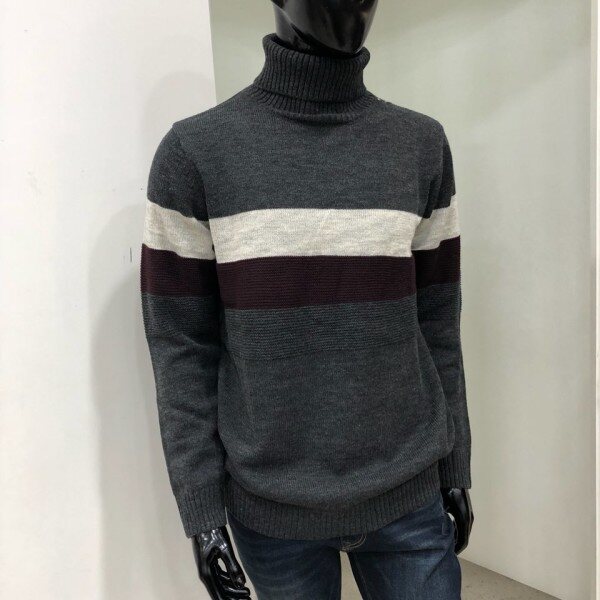 2018년 겨울 신상 남성 변형조직 블럭 터틀넥 스웨터 입니다. 변형조직과 양두조직의 서로 다른 조직감의 심플한 절개 포인트를 주었으며, 터틀넥 디테일로 보온성을 더해준 스웨터로 늦겨울까지 착용이 가능한 스웨터 입니다.