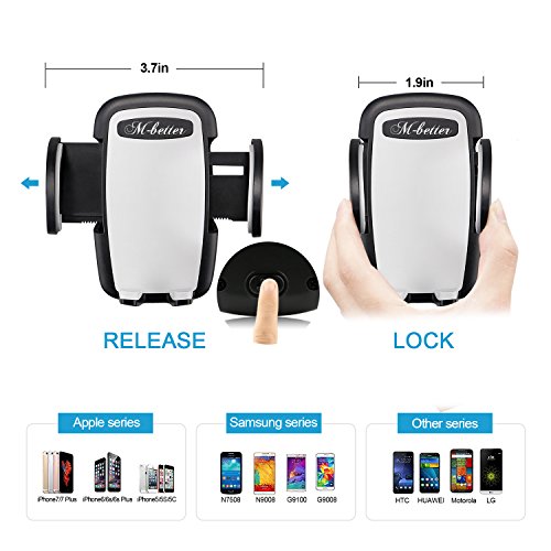 - [Universal Fit] Passed a wide range of tests, fit for most cellphones, iPhone 7 7 Plus iPhone 6s Plus, 6s, 5s, 5c, Samsung Galaxy S6, HTC, LG, Nexus, Nokia, GPS Device. Sturdy, cradle-less and attractive device holding system. Suitable for width size from 1.9 inch to 3.7inch smart phone or electronic devices.