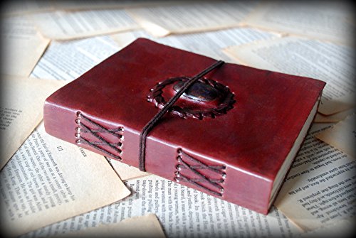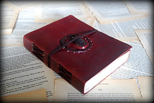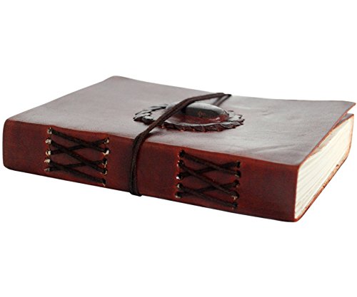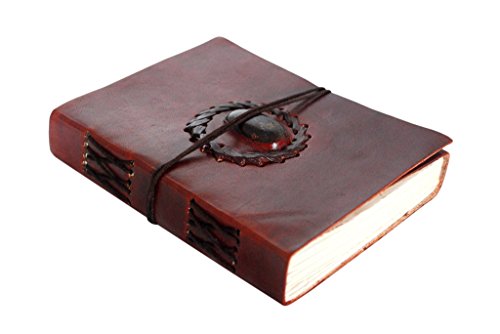 -. Title : Handmade Leather Journal Bound Notebook with Gemstone Leather Diary Gifts for Him Her