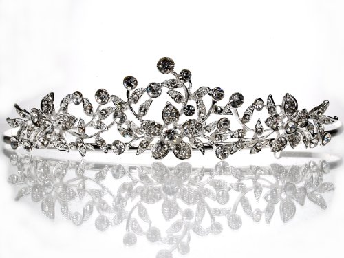 The SPARKLYCRYSTAL tiara comes in a keepsake presentation round clear plastic box. It``s a great display for your precious tiara and to keep your pleasant memory forever. Measures approximately 1-1/4`` tall at the center. The beautiful tiara is measures approximately 6```` in diameter (can be gently adjust to comfortable fit). Pin hole at both side of the tiara for extra security. Made with high quality clear Austrian crystals in silver plated metal setting.