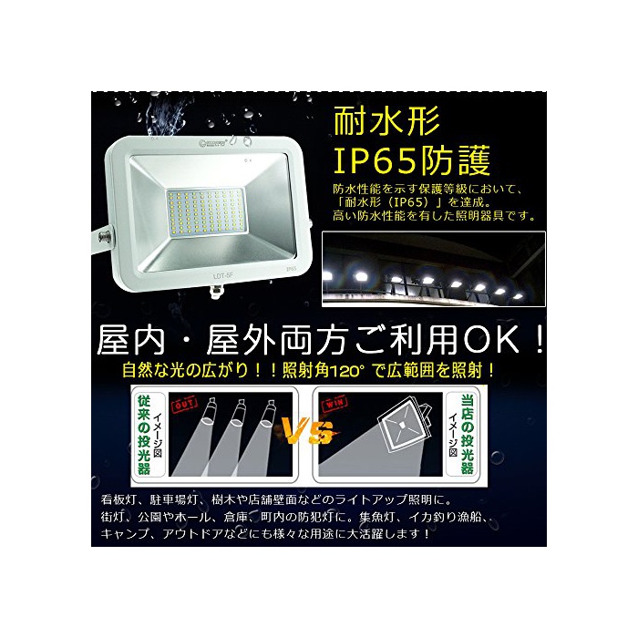 GOODGOODS LED 투광기 50W 500W 상당히 초박형 작업등 옥외 방수 LED라이트 주광색광각 가정 전원에 OK 【1년 보증】 LDT-5F