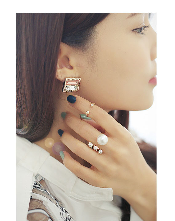 Rivet section size: 1.8 cm in diameter, three diamonds +1 pearl Size: 1.6 cm in inner diameter, two small drill: the inner diameter of 1.3 cm