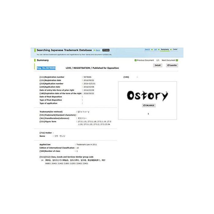 Ostory ※상표 등록호 Reg. No.5878686