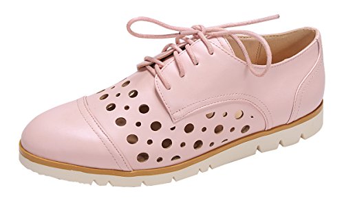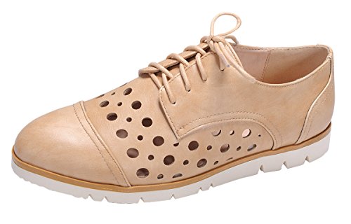Nature Breeze Women's Perforated Laser Cut Outs Flatform Lace-Up Oxford Shoe