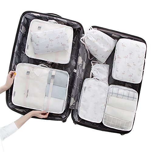 Product Description Package includes: 3 x clothes storage cubes: 1 x Large: 16.1"*12.4"*4.7" ; 1 x Medium: 13.4"*11"*4.7"; 1 x Small: 12.2"*9"*5.3" 1 x bra underwear case: 11.4"*8.3"*3.5" 1 x shoes bag: 7.5"*11.4"*4.5" 2 x laundry bags: 1 x Large: 10.4"*13.9"; 1 x Small: 6.6"*7.6" 1 x digital pouch: 10.6"*6.4"
