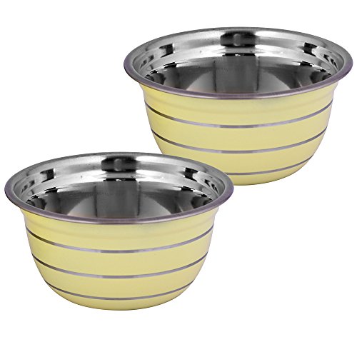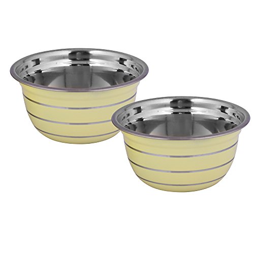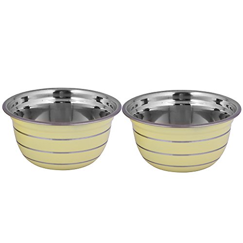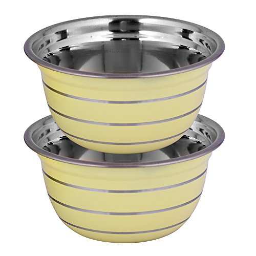 Kosma Set of 2 Premium Stainless Steel Deep Mixing Bowl | Salad Bowl in Yellow colour exterior and Mirror Finish Interior - 18cm (1.5 Litre)