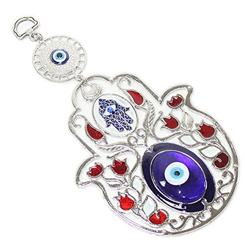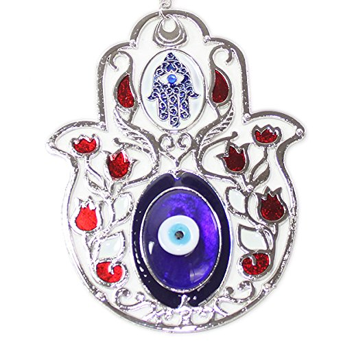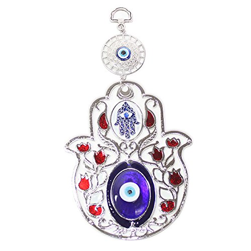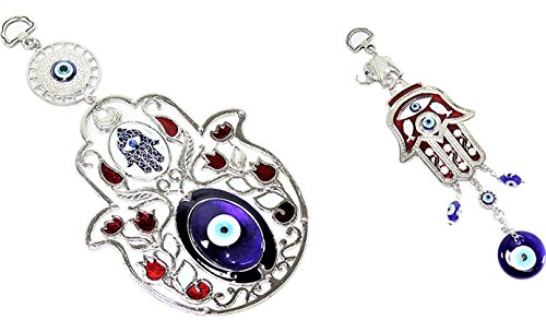 Set of 2 Turkish Blue Evil Eye (Nazar) 5" Hamsa Hand Red Flowers Amulets Wall Hanging Home Decor Protection Blessing Housewarming Birthday Gift US Seller