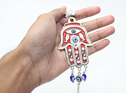 Hamsa Size: 5.25"(L) X 4.25"(H) Total Length: 9.5" (approx.) and 9.25"(H) X 2.5"(L) (approx.)