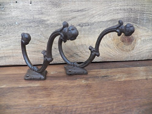 -. Title : Lot of 2 Beautiful Large 7" x 4.5" Fancy Ornate Cast Iron Coat Hat Hooks Hangers- Heavy Duty