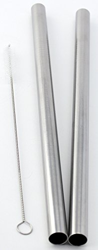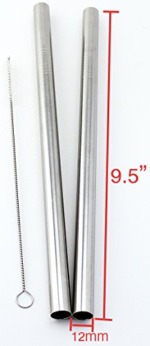 2 BOBA Straw Stainless Steel Extra Wide 1/2" x 9.5" Long Tapioca Pearl Bubble Tea Thick FAT - CocoStraw Brand