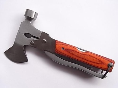 - Feature : Made of stainless steel, durable and portable / Multi-function tool includes axe, hammer, pliers, saw blade, knife, etc / The 8-in-1 Stainless steel hammer is perfect camping , outdoor activities or simple household fixes / Comes with a nylon-canvas sheath for carrying or storage / Measures 6.2"