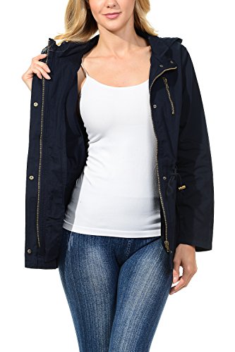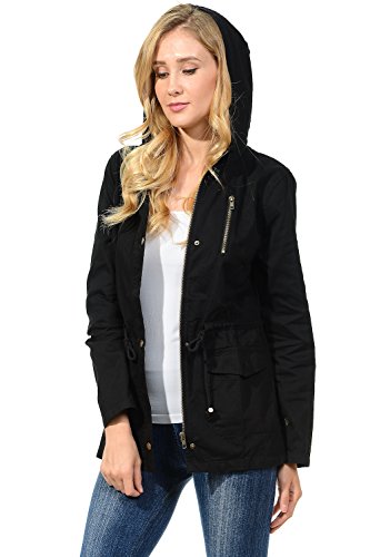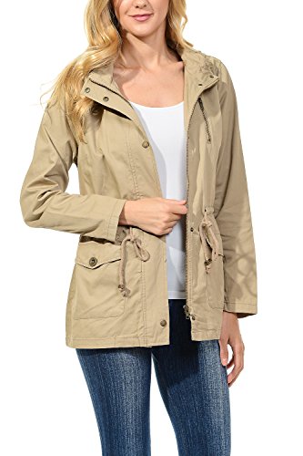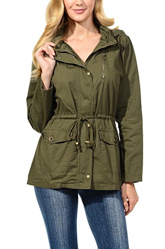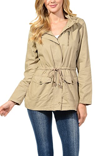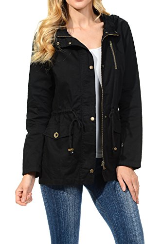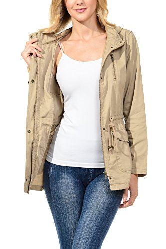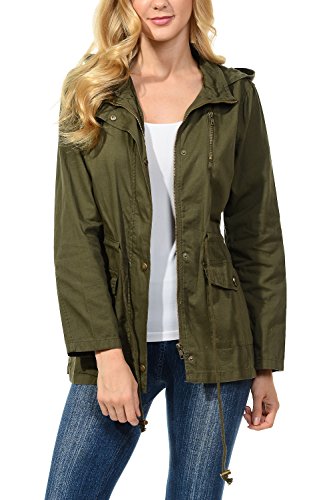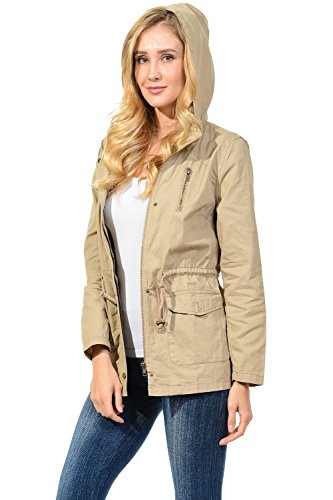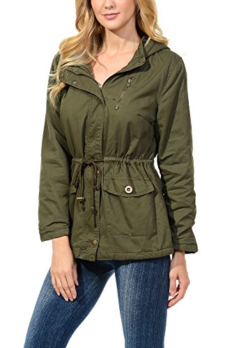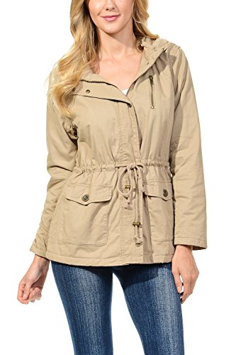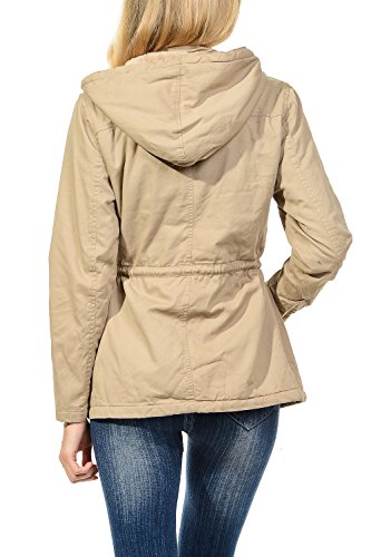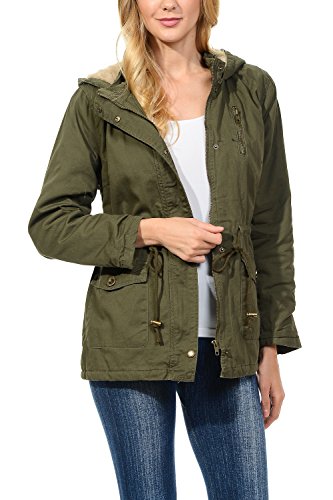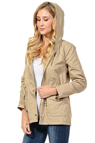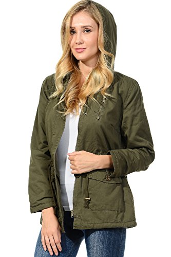 Binding : Apparel Product Description The Auline Collection Womens Military Safari Utility Fashion Hoodie Anorak Jacket features an attached hoodie and comes in either a sherpa faux fur lined option or no inner lining option. The faux fur lined option adds extra warmth while the no lining option is the better choice for layering or to wear in warmer weather. The jacket has a zipper closure with accompanying buttons, 2 front utility pockets, and an adjustable waist drawstring. Outer Fabric: 100% Cotton | Fur Lining: 100% Polyester. Available in colors Olive Green, Black, Khaki, Navy Blue. Sizes available are S, M, L, 1XL, 2XL, and 3XL. Please check the measurements in the picture gallery to ensure the best fit. 0