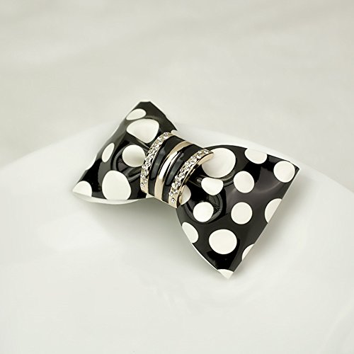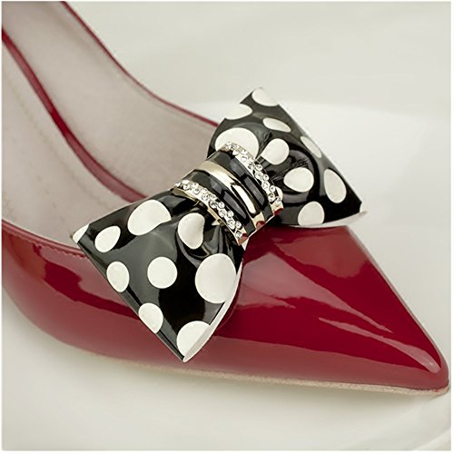 Douqu Clastic Wild Black White Dots Crystal Bow Artificial Leather Shoe Clips Charms Sandals Boots Clips Pair (1#)