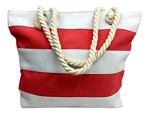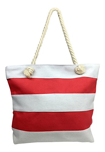 (Trezo)/Accessories/Luggage, Bags Travel/DIRECT FROM USA/Trezo Classic Beach Tote Bag with Rope Handles, Coral and White Stripe