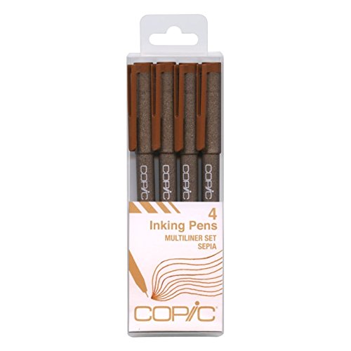 Copic Markers Multiliner Sepia Pigment Based Ink, 4-Piece Set