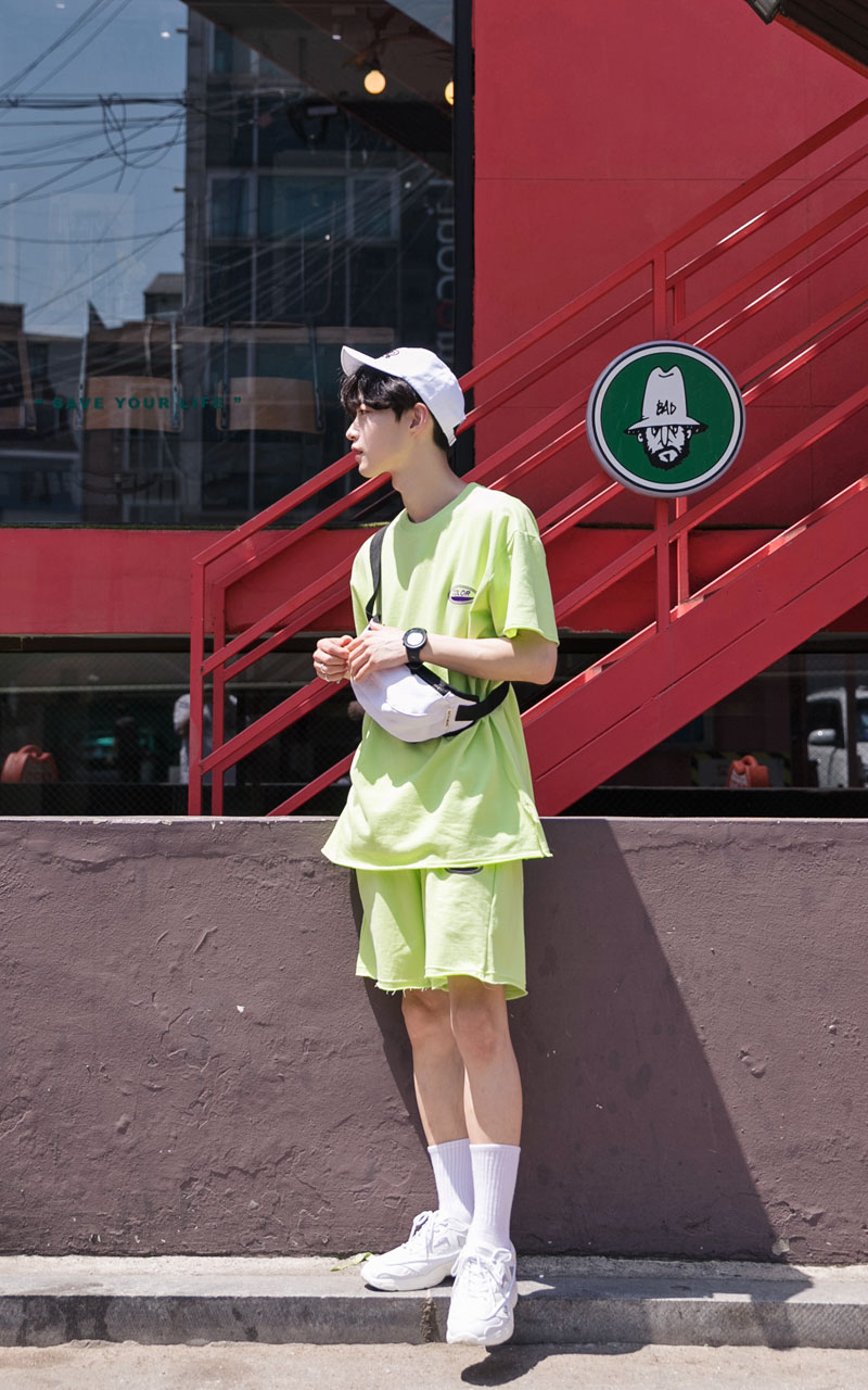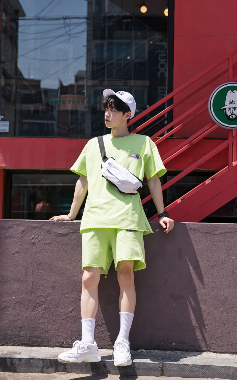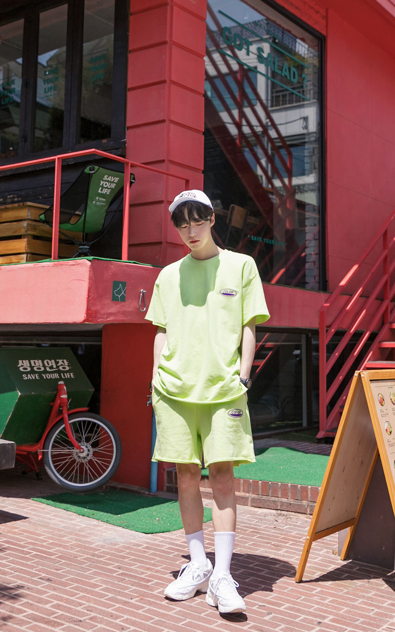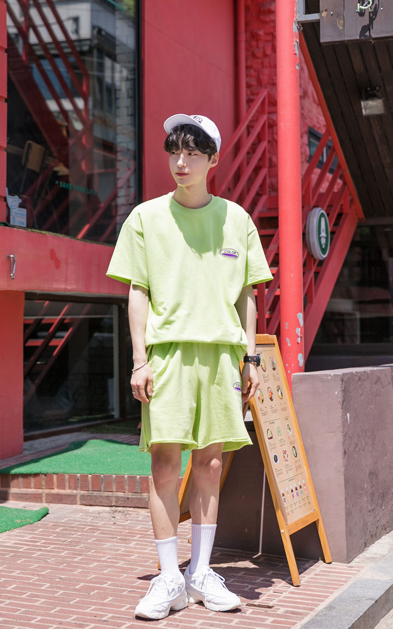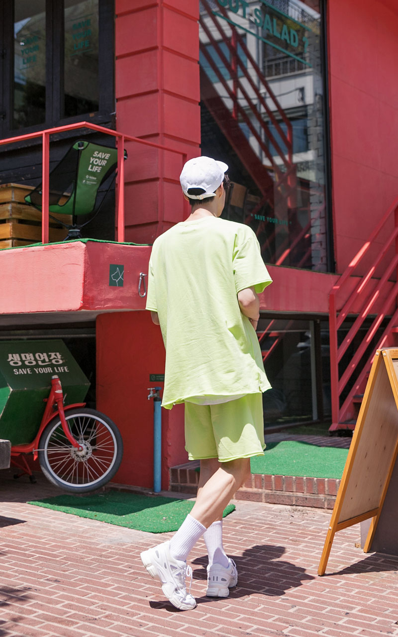 시원한느낌을 주는 네온컬러로 구성된 하프기장의 트레이닝 세트입니다.