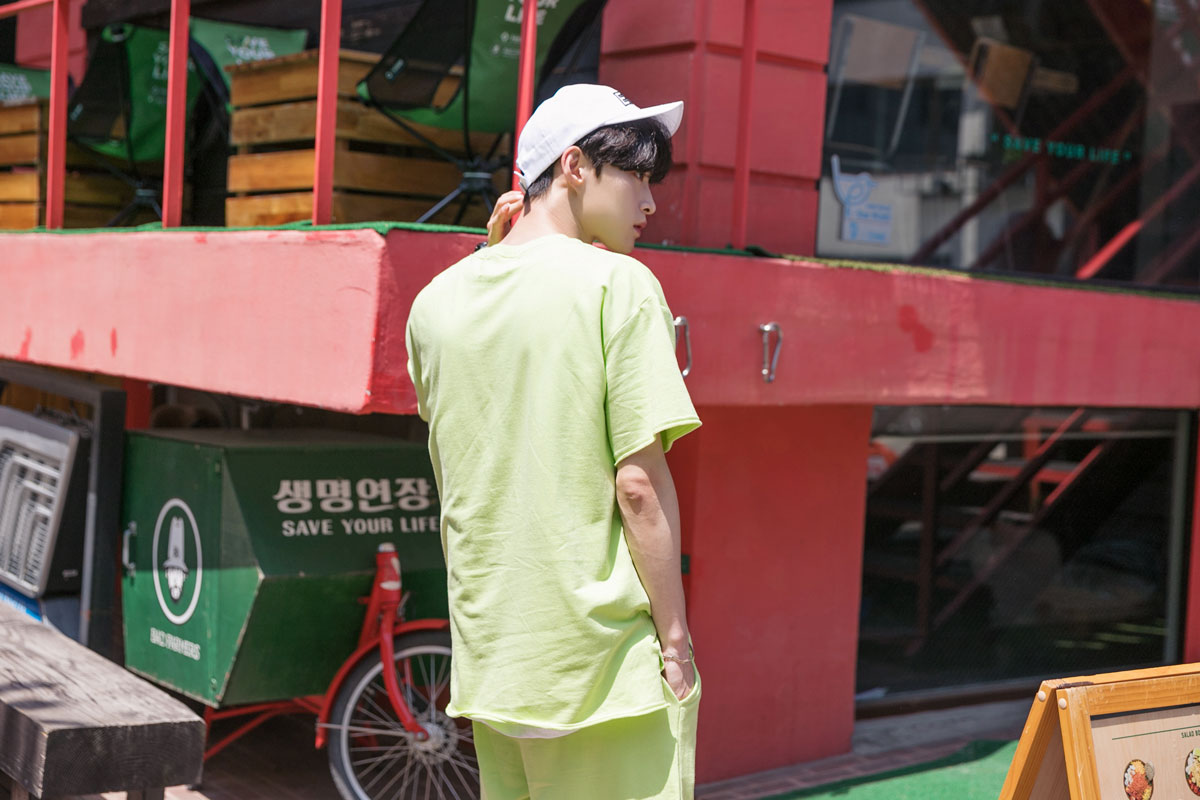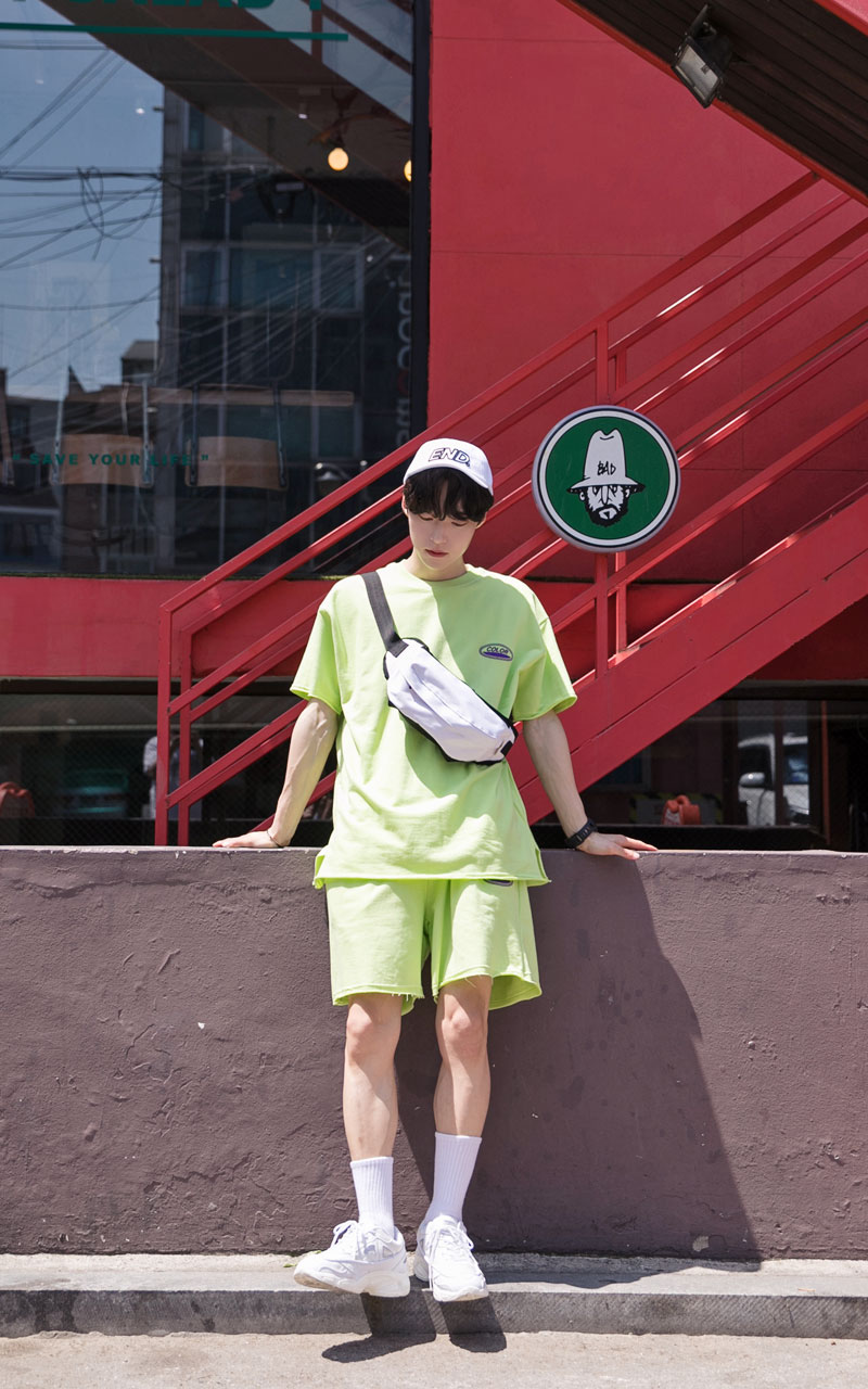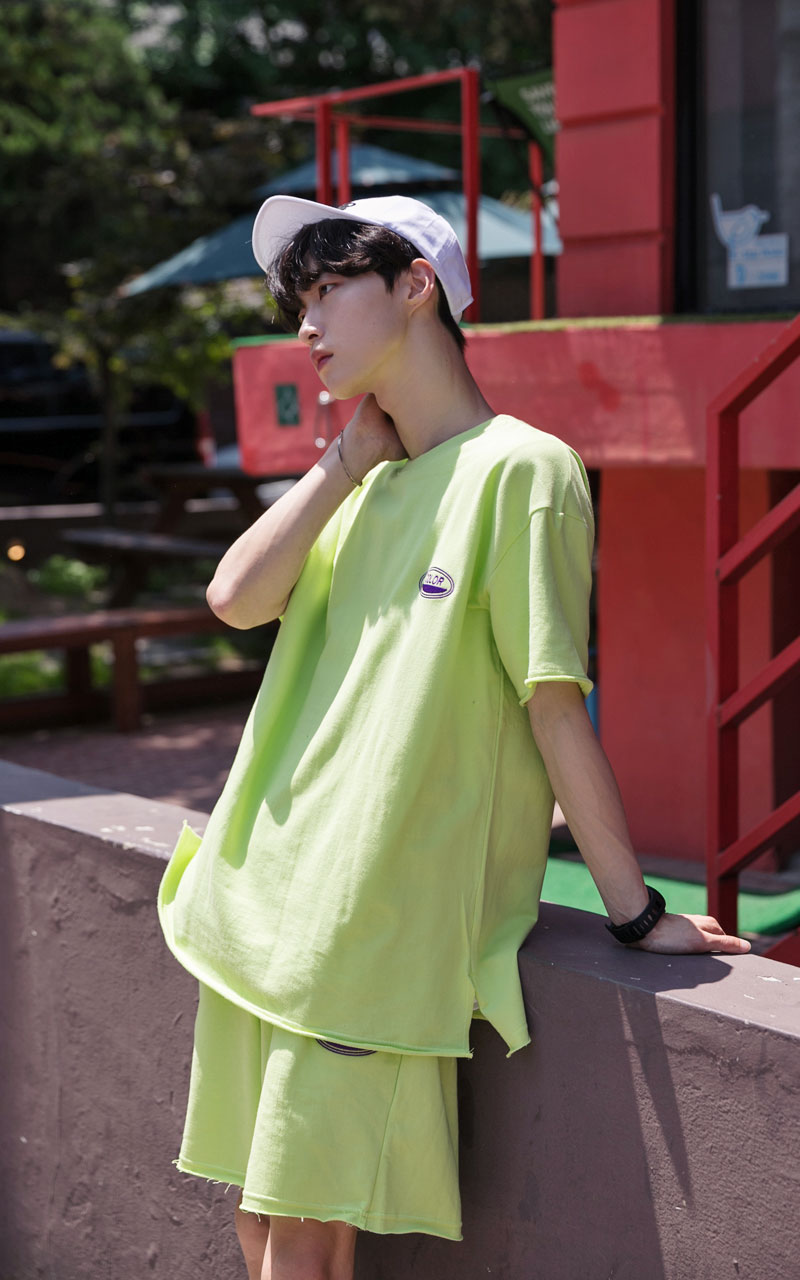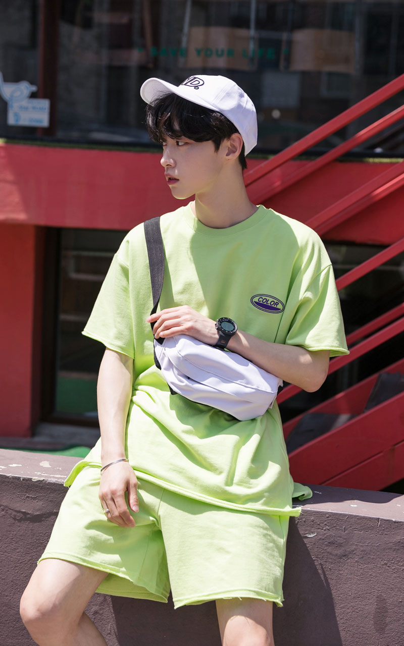 시원한느낌을 주는 네온컬러로 구성된 하프기장의 트레이닝 세트입니다.