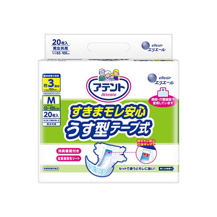 《아텐토》 틈《모레》안심 얇은형 테이프식 M사이즈 20매입【ADL구분:자고 보내는 것이 많은 분】