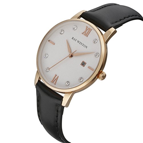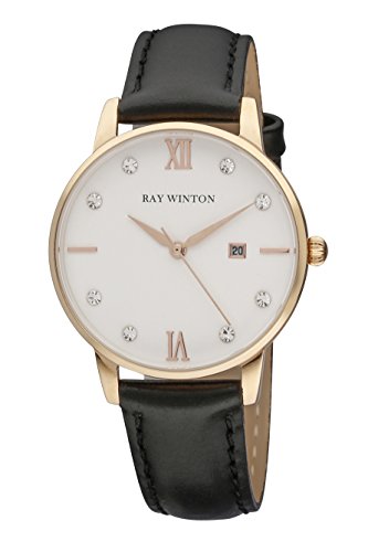 Ray Winton Women's WI0108 Date Analog White Dial Genuine Black Leather Watch