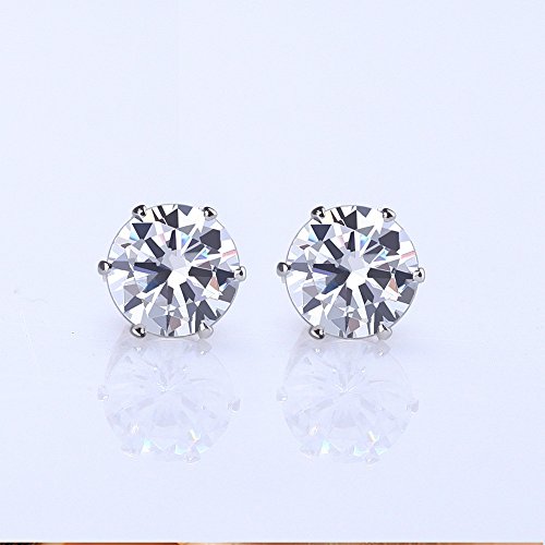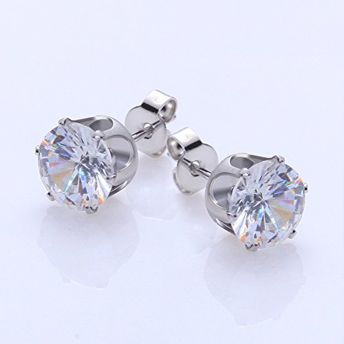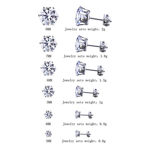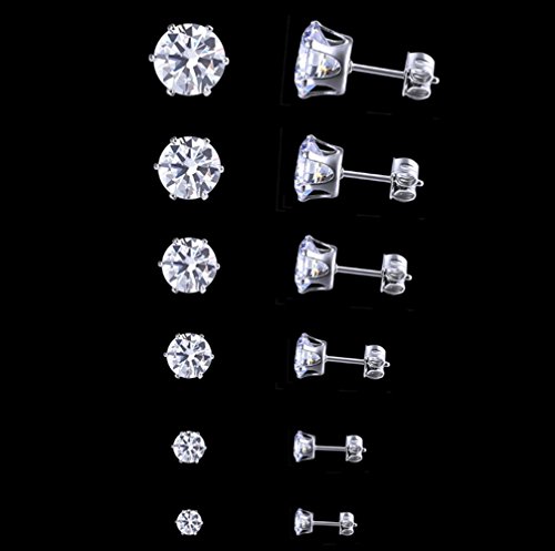 1 set(6 pairs) 316L Stainless Steel Round Clear Cubic Zirconia Stud Earring With Matching Backs By Alimitopia(White)
